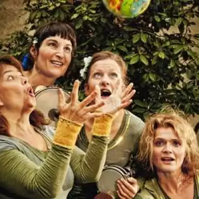 Tetra reser, leker och dansar med sina röster i världens sångtraditioner med trummor, stämmor, improvisa- tion och dans. Kom, sjung och var med i Tetras magiska och lekfulla musikvärld. I föreställningen har vi bakat in sånger från Sverige, Grekland, Irak, Palestina, Tjeckien, Haiti, Norge och Danmark.