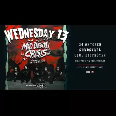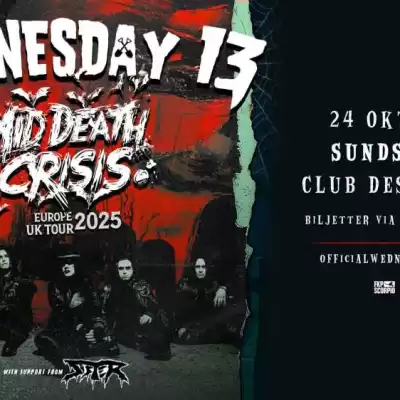 Wednesday 13 landar i Karlstad 18:e oktober! Den självutnämnde ”Duke of Spook” är tillbaka – och det med nytt material, ny energi och samma kompromisslösa mörker som gjort honom till en kultfavorit inom horrorpunken och metalvärlden!