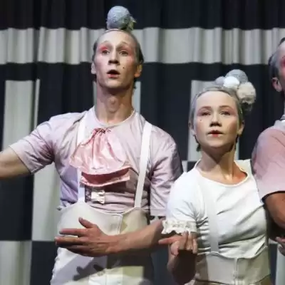 PUDER undersöker parallella verkligheter i en lekpark där dans, mim, akrobatik och det däremellan möts. En föreställning inspirerad av den franske filosofen Gaston Bachelards idéer om drömmar och rumslighet.