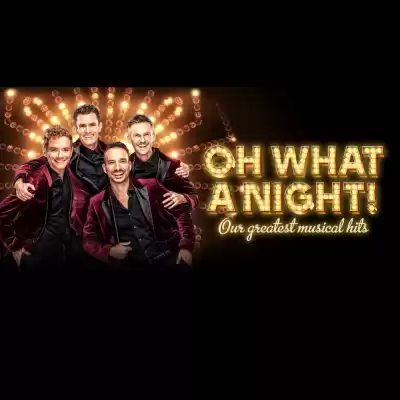 Nu är de tillbaka med O What a Night, en exklusiv musikal- och konsertupplevelse där ett eminent åttamannaband lyfter varje låt till nya höjder. I första akten hyllas de ikoniska numren från Jersey Boys: “December ’63 (Oh What a Night)”, “Sherry”, “Can’t Take My Eyes Off You” och fler tidlösa klassiker. Låtarna framförs med den fyrstämmiga briljans och energi som gjort kvartetten så älskad.