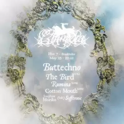 Vad: Chimera – Ultimat klubbkonceptInnehåll: Buttechno + Rumina + Cotton Mouth + The Bird + Josephine Moriko + SofftronicFredag 30 majVenue: Hus 7Insläpp 22.00Åldersgräns: 18+, läs mer om åldersgräns: