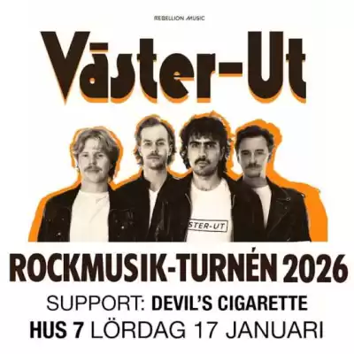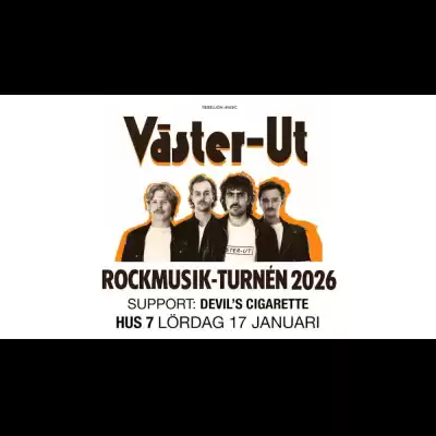 Band: Väster-UtSupport: Devils CigaretteDatum: Lördag 17 januarInsläpp: 20.00Live från: 21.00Lokal: Hus 7Åldersgräns: 18+ år