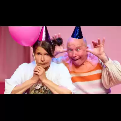 En gång till är en föreställning där kalasets lekar tar de mest överraskande vändningar. Med mimens uttryck förvandlas de till olika djur och varelser och förflyttas till nya världar.