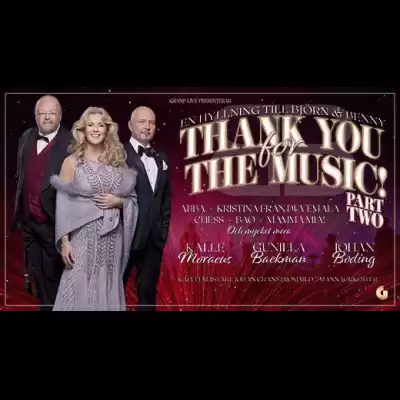 Äntligen är det klart – succén Thank You For The Music återvänder till de svenska scenerna våren 2026! Kalle Moraeus, Thérése Löf, Johan Boding, Karin Funk och en orkester med eliten av Sveriges musiker under ledning av Johan Granström kommer bjuda på en storslagen hyllning till två av våra största låtskrivare genom tiderna.