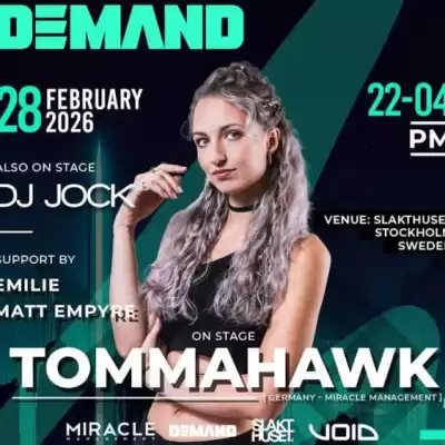 Slakthuset & Demand presents Hamburg-based artist TOMMAHAWK as a rising force in the international techno scene, known for her emotional, driving sets and contagious energy behind the decks. Her sound blends powerful basslines with uplifting force, creating a vortex of rhythm, connection, and joy.