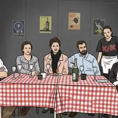 Hos familjen Mesnard är famijemiddagarna på fredagar. De skulle bara träffas på "Père tranquille" innan de går till restaurangen. Och ikväll är det... födelsedag.Under en enda måltid kolliderar familjehistoria, spänningar och minnen. Förbitttingar mellan Philippe, som har lyckats och inte tvekar att låta alla veta det, systern Betty, som inte skräder orden, Henri, vars äktenskap hänger i en skör tråd, och deras mamma, som kämpar för att dölja sin favoritism för Philippe. Och allt detta under bistroservitrisen Denis vakande öga, som delar ut poängen.Föreställningen spelas på franska med svenska övertexter!