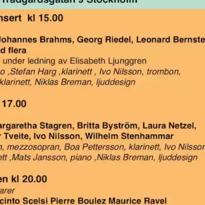 Elisabeth Ljunggren, mezzosopran, Boa Pettersson, klarinett, Ivo Nilsson, trombon ,
