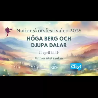 Välkomna på Nationskörsfestivalen 2025! Årets mest unika musikföreställning inträffar fredagskvällen den 11 april när Uppsalas nations- och studentkörer intar den vackra universitetsaulan för att bjuda in till sång och gemenskap. Detta år har vi även finbesök på konserten av Örebro Studentsångare! Körerna framför alla ett stycke på temat “Höga berg och djupa dalar”, och ni kommer att få höra på musik i massvis med olika genrer från blandkörer, damkörer och manskörer i alla storlekar och profiler. Inte nog med det, Fredrik Berglund besöker Uppsala för att leda festivalkören, som ramar in konserten med deltagare från samtliga körer.