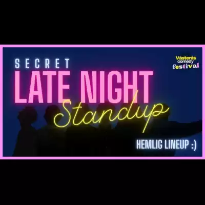 Som grande finale på denna festivalkväll uppträder här en topphemlig lineup av komiker som tidigare uppträtt under dagen. Det här är showen där komikerna vågar ta ut svängarna, det här är programpunkten med ett komikermaraton du inte vill missa, det här är efterfesten. Det här är Secret Late Night Comedy.