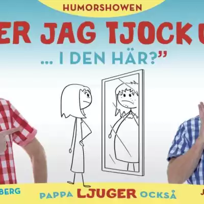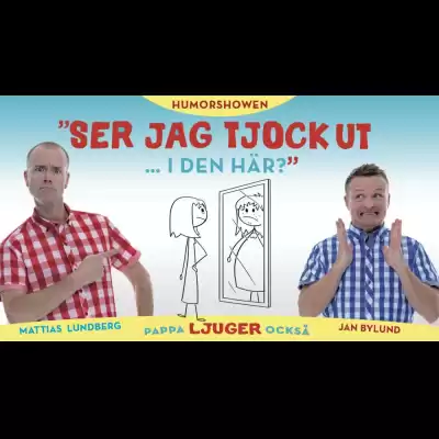 Efter succén med ”Mamma Ljuger”, där de lockade 60 000 besökare till närmare 150 föreställningar, är Jan Bylund och Mattias Lundberg tillbaka på scen med en ny humorshow som inte liknar något annat: I ”Ser jag tjock ut i den här? – pappa ljuger också” utlovas 90 minuter av oavbrutna skratt och igenkänning, där de humoristiskt hyllar kvinnorna i sina liv och bjuder på frikostiga insikter om allt vi vågar – och inte vågar – säga om relationer.
